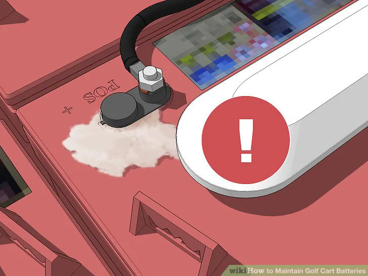 2 Unplug your golf cart and check the vent caps. You do not need to unhook the batteries, but you do need to make sure electricity isn’t flowing to them. Turn off the golf cart and unplug the charger. Then, push against the vent caps on the batteries to make sure they are tightly in place.